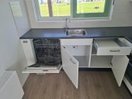 Entree, hal, toilet, woonkamer met toegang tot de tuin met berging. De keuken is voorzien van koelkast met vriezer, combi magnetron/oven, vaatwasser, elektrische kookplaat en wasemkap. Trap naar verdieping. Eerste verdieping: de badkamer is voorzien van douche, grote wastafel en toilet, er is een aparte bergruimte met wasmachineaansluiting en een technische ruimte voor de luchtwarmtepomp. Er zijn 2 slaapkamers (een grote en een kleinere).