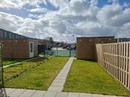Bij de woning behoort een een moestuin in het (afgesloten) moestuingedeelte. Er is een VVE voor het overkoepelende project is die onder andere het algemeen groen, buurthuis, strand en speelvoorzieningen beheren.