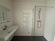 De badkamer is volledig betegeld en beschikt over een inloopdouche, wastafel met spiegel en een handdoekradiator. Het aparte toilet is zwevend en voorzien van een fontein, en is half betegeld.