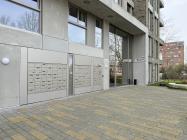 De entree biedt toegang tot een hal die leidt naar de woonkamer, de badkamer, het toilet en de meterkast. De woonkamer is licht en ruim, dankzij de grote ramen die voor een overvloed aan natuurlijk licht zorgen. Vanuit de woonkamer is er toegang tot de moderne open keuken, die voorzien is van inbouwapparatuur met o.a. een inductiekookplaat, afzuigkap, combi-oven, vaatwasser en koel-vriescombinatie. Via een schuifdeur kom je in de slaapkamer, en vanuit de woonkamer is er tevens toegang tot een berging welke voorzien is van een opstelplaats voor de wasmachine.