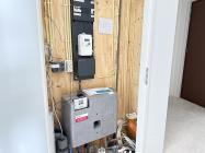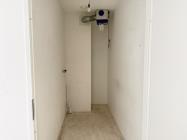 Je komt binnen in een nette hal met meterkast, een separaat toilet met fonteintje en een inpandige berging met aansluiting voor de wasmachine.