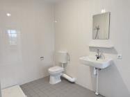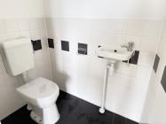 De badkamer is praktisch ingericht met een flatmate, wastafel en toilet. Deze is zowel vanuit de hal als vanuit één van de slaapkamers bereikbaar, wat zorgt voor extra comfort en een slimme indeling.