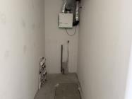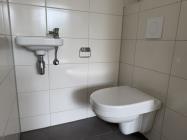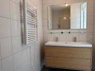 Vanuit de woonkamer kom je in een tweede hal, die toegang biedt tot de tweede slaapkamer, het separate zwevende toilet met fonteintje en de volledig betegelde badkamer. De badkamer is ingericht met een verbrede wastafel met twee kranen, een grote spiegel, een handdoekenradiator en een inloopdouche.