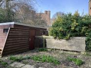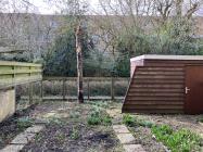 Aan de voorzijde bevindt zich de tweede slaapkamer. De badkamer is uitgerust met douche, wastafel, radiator en wasmachineaansluiting. Separaat toilet aanwezig. In de tuin staat een vrijstaande berging, ideaal voor extra opslag of fietsen.