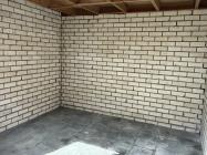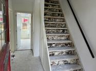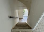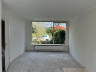 Begane grond: entree, hal met toilet, trap naar verdieping. Lichte woonkamer, standaard keukenblok met kookplaat en afzuigkap, toegang tot de achtertuin en grote stenen berging.