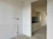Via de hal bereikt u de lichte en ruime woonkamer, die via een schuifpui toegang geeft tot het balkon. De woonkamer staat in verbinding met de halfopen keuken, die onder meer is voorzien van een kookplaat, afzuigkap, vaatwasser, oven en een koelkast. Bovenkasten zorgen daarnaast voor extra opbergruimte. Aan de voorzijde van het appartement bevindt zich een extra kamer die ideaal is als bijkeuken, waar tevens de aansluiting voor de wasmachine aanwezig is. Vanuit de woonkamer bereikt u via een schuifdeur de slaapkamer, die direct verbonden is met de badkamer. De hal biedt eveneens toegang tot de badkamer, die gedeeltelijk is betegeld en is uitgerust met een inloopdouche, toilet en wastafel met spiegel. Daarnaast is er een separaat toilet met fonteintje. De tweede slaapkamer ligt aan de voorzijde van het appartement en beschikt over een ruimte met de opstelling voor de cv-ketel. Op de begane grond bevindt zich bovendien een extra berging, ideaal voor bijvoorbeeld fietsen.