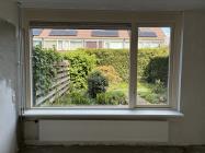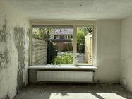 Begane grond: entree, hal met toilet en toegang tot de inpandige berging. Lichte woonkamer met open keuken met toegang tot de zonnige achtertuin.