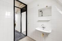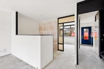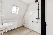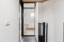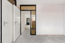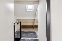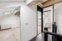 Middels de trapopgang wordt de tweede woonlaag bereikt. Hier bevinden zich een slaapkamer, werkkamer en badkamer. De badkamer is voorzien van douche, wastafel en wasmachineaansluiting.