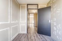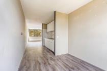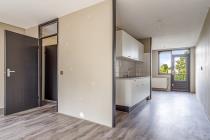 Entree/hal met meterkast, separaat toilet en toegang tot de slaapkamer, de badkamer en de ruime woonkamer met aansluitend de keuken. De keuken betreft een eenvoudig keukenblok zonder inbouwapparatuur. De badkamer is voorzien van een douche, wastafel en wasmachine aansluiting. Middels de loopdeur in de woonkamer wordt de tweede slaapkamer bereikt van circa 11m2. Het balkon aan de voorzijde van het appartement is gelegen op het zonnige zuidwesten.