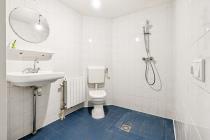 Overloop met toegang tot de drie slaapkamers van diverse afmetingen en de badkamer. De badkamer is voorzien van een douche, toilet en wastafel.