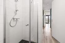 Entree/hal met meterkast, toilet en toegang tot de badkamer. Badkamer is voorzien van een ruime inloopdouche en wastafel. Via de hal wordt de slaapkamer bereikt. De ruime woonkamer heeft veel lichtinval door de grote raampartijen en geeft toegang tot het balkon gelegen op het zonnige zuidwesten.