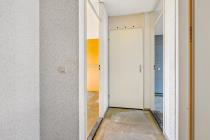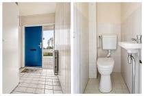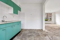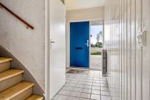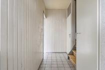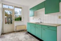 Entree/hal met meterkast, opbergkast, toilet en toegang tot de aangebouwde berging, de woonkamer en de keuken. De keuken bevindt zich aan de voorzijde van de woning en betreft een eenvoudig keukenblok met voldoende kastruimte. Middels de loopdeur in de woonkamer is de achtertuin toegankelijk.