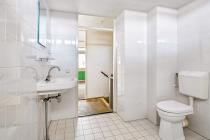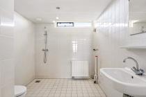 Overloop met toegang tot de vier slaapkamers van diverse afmetingen en de badkamer. De badkamer is voorzien van een douche, toilet, wastafel en wasmachine aansluiting.