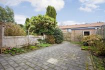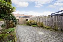 - Diepe achtertuin op het zuidoosten met achterom en berging.