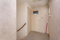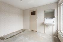 Via de entree kom je in de hal met toilet en fontein. Vanuit hier bereik je de trap naar de eerste verdieping, de woonkamer en de dichte keuken. De doorzonwoonkamer is heerlijk licht en biedt voldoende ruimte voor zowel een zit- als eethoek, met directe toegang tot de tuin. De gesloten keuken is eenvoudig uitgevoerd en voorzien van een keukenblok en afzuigkap. Ook vanuit de keuken is de tuin bereikbaar. In de hal bevindt zich bovendien een praktische trapkast met meterkast.