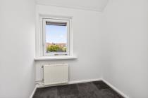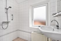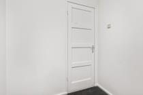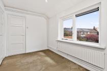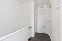 De overloop is voorzien van een praktische vaste kast en biedt toegang tot drie slaapkamers, waarvan twee aan de voorzijde en één aan de achterzijde. De slaapkamers aan de voorzijde beschikken beide over vaste kast(en). Daarnaast bevindt zich op deze verdieping een eenvoudige, grotendeels betegelde badkamer met douche en wastafel. In de vaste kast op de overloop is de opstelplaats van de cv-ketel gesitueerd.