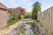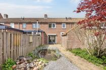 De op het oosten gelegen achtertuin is grotendeels betegeld en voorzien van beplanting en groen. In het midden van de tuin bevindt zich een stenen berging met elektra. Dankzij de praktische indeling biedt de tuin volop mogelijkheden om hier een fijne buitenplek te creëren, waar je heerlijk kunt genieten van het buitenleven en gezellige momenten met familie en vrienden.