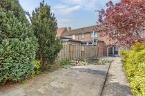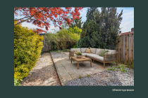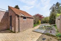 - Achtertuin op het oosten met stenen berging.
