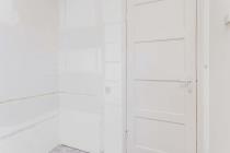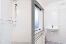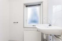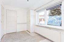 De overloop beschikt over een vaste kast en geeft toegang tot drie slaapkamers en de badkamer. Aan de voorzijde bevinden zich twee slaapkamers, waarvan één kleinere kamer en één ruime slaapkamer met twee vaste kasten en toegang tot de bergzolder via een vlizotrap. Aan de achterzijde ligt de derde slaapkamer, eveneens voorzien van twee vaste kasten. Alle slaapkamers zijn uitgerust met HR++ beglazing. De badkamer aan de achterzijde is verouderd en voorzien van een douche en wastafel. Hier ligt een mooie kans om een moderne en eigentijdse badkamer te realiseren.