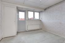 Entree, hal met toegang tot toilet, trapopgang en trapkast met vernieuwde stoppenkast. De doorzonwoonkamer is voorzien van vloerbedekking, hoge plafonds en een schouw. Via de dubbele openslaande deuren is de achtertuin bereikbaar. Aan de achterzijde bevindt zich de dichte keuken met granito vloer; de keukenopstelling is verwijderd, waardoor de ruimte volledig naar eigen inzicht kan worden ingericht. Ook vanuit hier is er toegang tot de tuin.