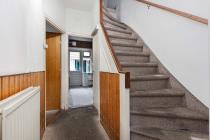 De ruime overloop met vloerbedekking geeft toegang tot alle vertrekken. Aan de achterzijde bevindt zich de stook- en wasruimte met toegang tot het balkon. Hier hangt de Intergas ketel (bouwjaar ca. 2021).