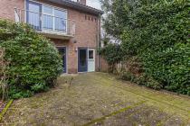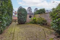 De woning beschikt over een voor-, zij- en achtertuin. De ruime achtertuin ligt op het zuidoosten en biedt diverse plekken om zowel van de zon als van de schaduw te genieten. De tuin is grotendeels bestraat en wordt afgewisseld met groen, waaronder hoge bomen en struiken. Via een achterom is de tuin bereikbaar. Daarnaast is er een vrijstaande stenen berging aanwezig. De voortuin is groen aangelegd en voorzien van een pad naar de voordeur.