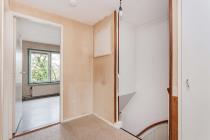 De overloop geeft toegang tot drie slaapkamers en een vaste kast. De slaapkamer aan de achterzijde beschikt over een wastafel en biedt toegang tot het balkon. Eén van de slaapkamers aan de voorzijde is voorzien van een vaste kast. De badkamer is uitgerust met een douche en een wasmachineaansluiting. Dankzij het aanwezige raam is er natuurlijke ventilatie en daglicht.