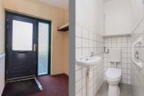 Entree, hal met garderoberuimte en meterkast, gevolgd door een tweede hal met toilet en fontein, trappenkast en toegang tot zowel de keuken als de woonkamer. De lichte doorzonwoonkamer biedt een vrij uitzicht aan de voorzijde en staat in verbinding met de halfopen keuken, die momenteel is opgesteld in een rechte opstelling. Vanuit de keuken is de achtertuin bereikbaar.