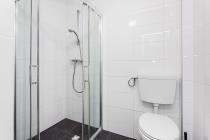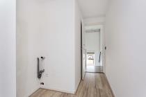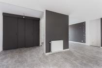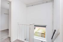 Overloop met toegang tot twee slaapkamers aan de voorzijde, beide voorzien van een vaste kast. In één van deze kasten bevindt zich de opstelplaats van de cv-ketel. Op de overloop is tevens een zwevend toilet met fonteinmeubel aanwezig en toegang tot een tweede hal. Vanuit deze hal zijn de wasmachineaansluiting en twee slaapkamers aan de achterzijde bereikbaar.