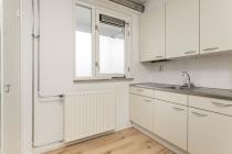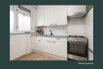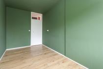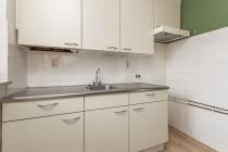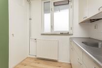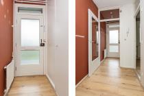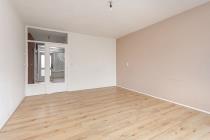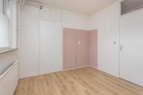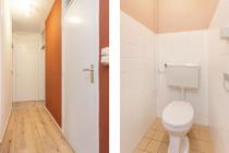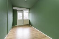 De entree van het appartement geeft toegang tot de hal met meterkast, van waaruit alle ruimtes bereikbaar zijn. Aan het einde van de gang bevindt zich een vaste kast voor extra bergruimte. De royale woonkamer is aangenaam licht door de grote raampartijen. Aan de achterzijde liggen twee slaapkamers, beide met directe toegang tot het balkon op het zuidwesten. Dit is een heerlijke plek om te genieten van de zon en het groene uitzicht. De derde slaapkamer bevindt zich aan de voorzijde en is voorzien van een praktische inbouwkast. De aparte keuken beschikt over een eenvoudig keukenblok, een afzuigkap en de opstelplaats van de cv-ketel. De volledig betegelde badkamer is uitgerust met een douche, wastafel en aansluiting voor de wasmachine. Het toilet is separaat en voorzien van een fonteintje.