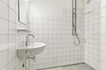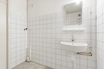 De badkamer is centraal in de woning gesitueerd en voorzien van een douche en wastafel. Het toilet is separaat en bereikbaar vanuit de hal.