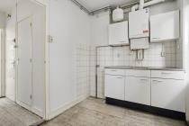Aan de achterzijde bevindt zich momenteel een praktisch keukenblok. Dit keukenblok kan desgewenst worden verwijderd, waardoor de ruimte anders kan worden ingedeeld. Op deze wijze ontstaat de mogelijkheid om aan de achterzijde een separate slaapkamer te realiseren. Vanuit deze ruimte is tevens het balkon toegankelijk, dat zich over de volledige breedte van de woning uitstrekt en zorgt voor een prettige buitenruimte.