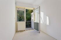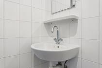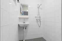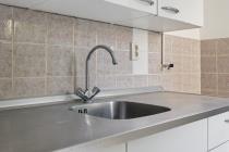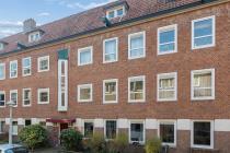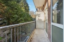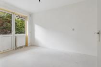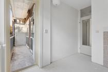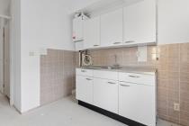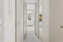 Via het algemene trappenhuis kom je binnen in de hal. Aan de voorzijde ligt de woonkamer welke veel lichtinval heeft. Aan de achterzijde van de woning bevinden zich maar liefst twee slaapkamers en de dichte keuken. Alle drie deze vertrekken geven toegang tot de buitenruimte, gelegen op het zuidoosten. In het midden van de woning ligt de badkamer en het separate toilet. Tot slot, is er op zolder nog ruimte om spullen op te slaan in de berging.