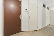 Entree van de woning; hal met toegang tot alle vertrekken; ruime woonkamer en dichte keuken met toegang tot het balkon op het westen; twee slaapkamers; inpandige berging; badkamer voorzien van wastafel, douche en separaat toilet; individuele berging aanwezig op de begane grond;