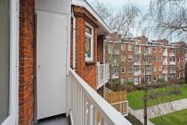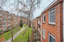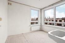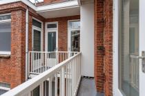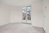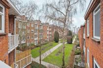 Aan de linkerzijde van het appartement bevindt zich de lichte en ruime woonkamer. Vanuit hier heb je toegang tot het knusse balkon op het zuiden, waar je in de middag en avond kunt genieten van de zon en een fraai uitzicht hebt over het groene binnenhof.