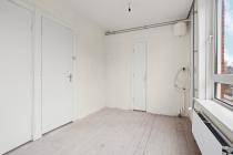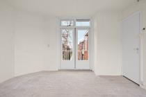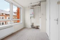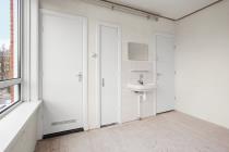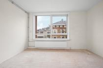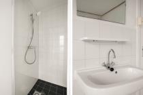 Aan de rechterzijde van het appartement bevindt zich de slaapkamer, met uitzicht over beide straten. De slaapkamer beschikt over een wastafel en biedt voldoende ruimte voor een tweepersoonsbed en kastruimte. Vanuit de slaapkamer is er directe toegang tot de badkamer, welke is uitgerust met een douche.