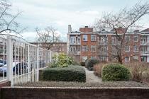 Het zonnige terras op het westen biedt uitzicht op de gezamenlijke binnentuin en zorgt voor een rustige, groene leefomgeving.