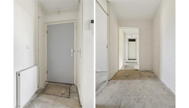 Via de gezamenlijke trappenhuis bereik je de woning op de begane grond, dus geen trappen, ideaal! Je komt binnen in de ruime hal en deze geeft je toegang tot alle ruimtes in de woning. De woning is circa. 84m2 en geheel naar eigen wens in te delen. Aan de achterzijde ligt de ruime living, je hebt hier genoeg ruimte voor zowel een fijne zit- als eethoek. De living geeft je toegang tot de tuin, een verlengde van je woonruimte. De tuin is gelegen op het noorden.