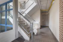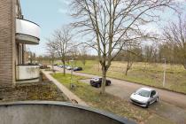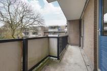 Via het gezamenlijke trappenhuis bereik je de woning op de eerste verdieping. Je komt binnen in de entree/hal, vanwaar je direct toegang hebt tot de lichte woonkamer met aangrenzende dichte keuken. Vanuit de keuken is het balkon aan de voorzijde bereikbaar. Centraal in de woning bevinden zich de badkamer met douche en wastafel en het separate toilet. Aan de achterzijde liggen twee slaapkamers, beide met toegang tot het zonnige balkon op het zuiden.