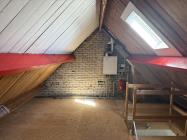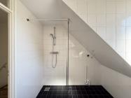 Overloop met toegang tot drie in varieërende grootte slaapkamers. De badkamer is voorzien van tweede toilet, douche en wasmeubel. De wasmachine aansluiting bevindt zich in de badkamer.