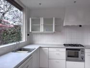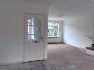Entree met hal, toiletruimte en trapopgang. De lichte woonkamer is vergroot door de voormalig keukenruimte bij de woonkamer te betrekken en de keuken in een uitbouw te realiseren. Vanuit de keuken is er een tuinkamer bereikbaar en vanuit de hal is de praktische kelder te bereiken.